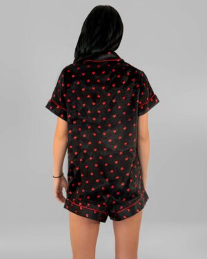 Комплект Къса Сатенена Пижама – Розова с Червено – „Valentine“